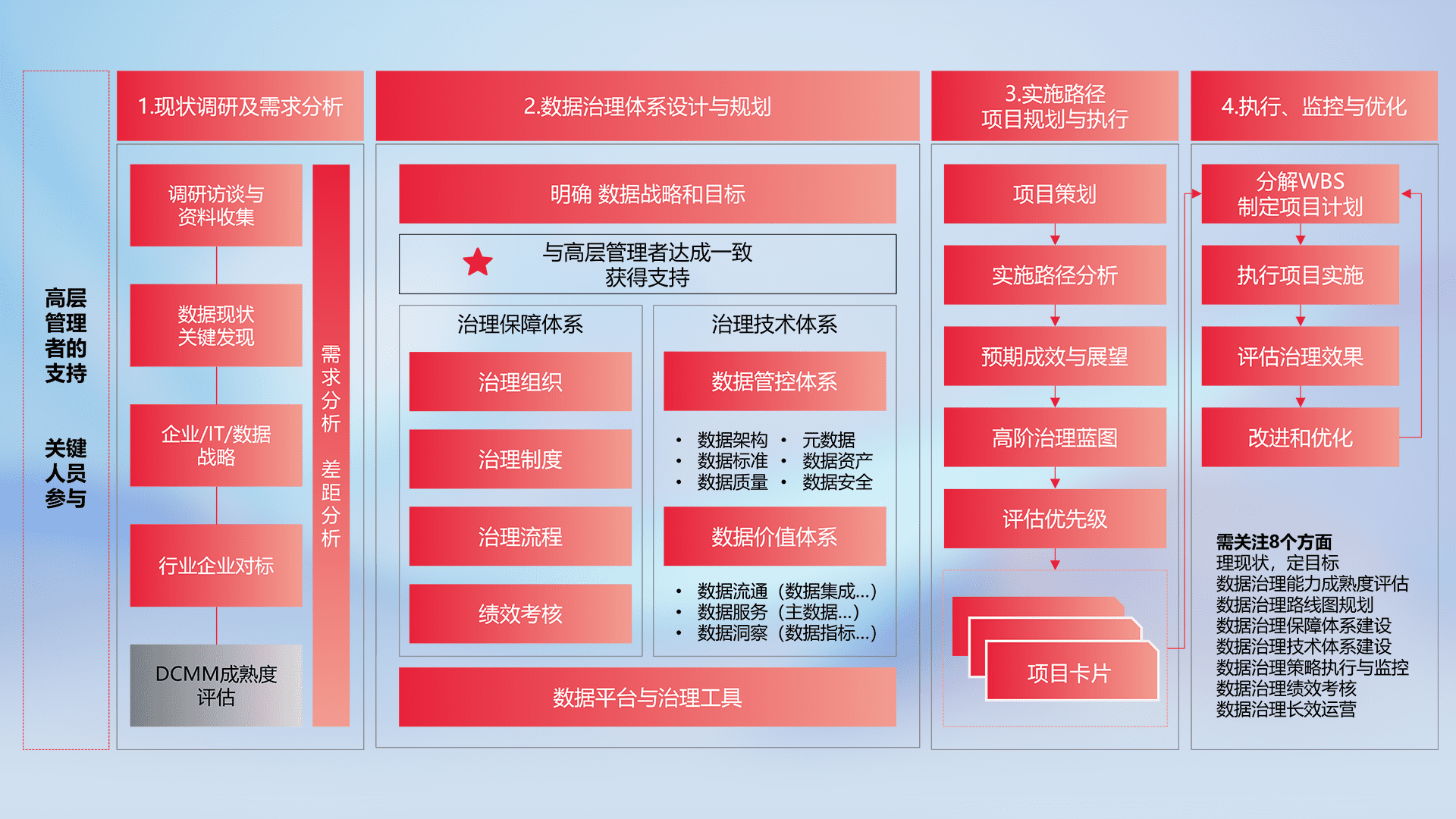 制定并执行统一的数据标准,,规范数据定义和格式,,,消除冗余和不一致性,,,,实现跨部门和跨系统的数据一致性,,,为企业提供标准化的数据基础。。。。